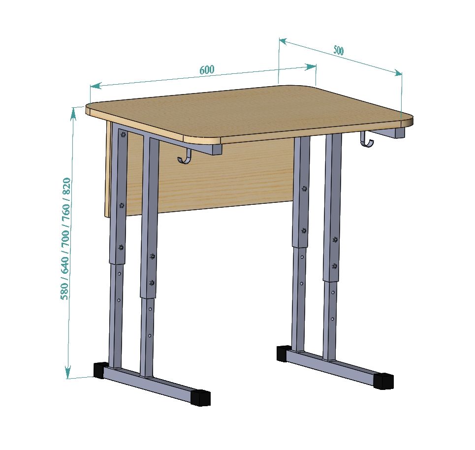 Возможная регулировка школьной парты по высоте (от пола до столешницы):
